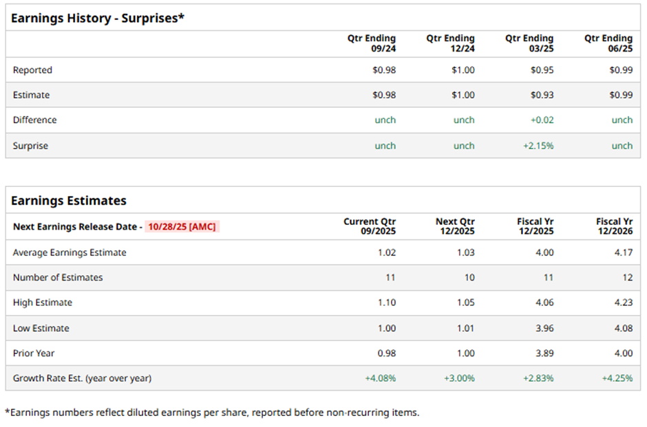 EQR is expected to release its fiscal Q3 2025 earnings results after the market closes on Tuesday, Oct. 28. Ahead of this event, analysts project the Chicago, Illinois-based company to report a normalized FFO of $1.02 per share, a growth of 4.1% from $0.98 per share in the year-ago quarter. It has met or surpassed Wall Street's bottom-line estimates in the last four quarterly reports.